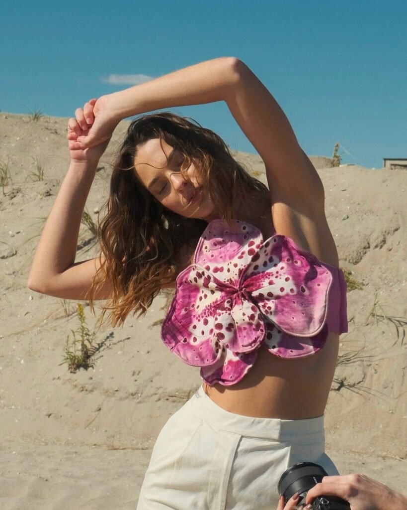 Sabemos que el verano siempre trae flores, pero AMUR —una marca que combina sostenibilidad con diseño  lleva el concepto al siguiente nivel. Su orchid top no tiene prints: la flor literalmente es la prenda. Con una silueta en 3D esta pieza es una obra de arte.