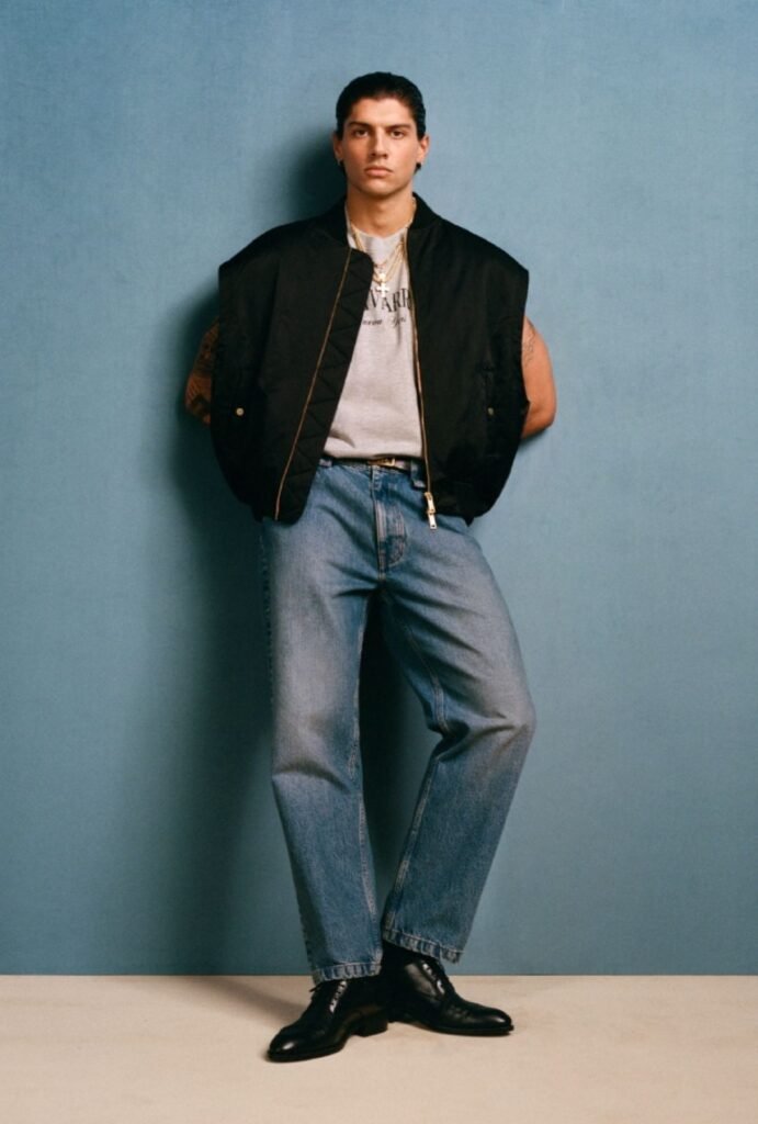 El armario masculino de Zara X Willy Chavarría mezcla oversize urbano, workwear utilitario y sastrería con carácter. Chalecos biker, bomber jackets y truckers conviven con cazadoras de cuero cropped y chaquetas tipo Eisenhower, mientras camisetas y polos boxy se cargan de branding y detalles florales.