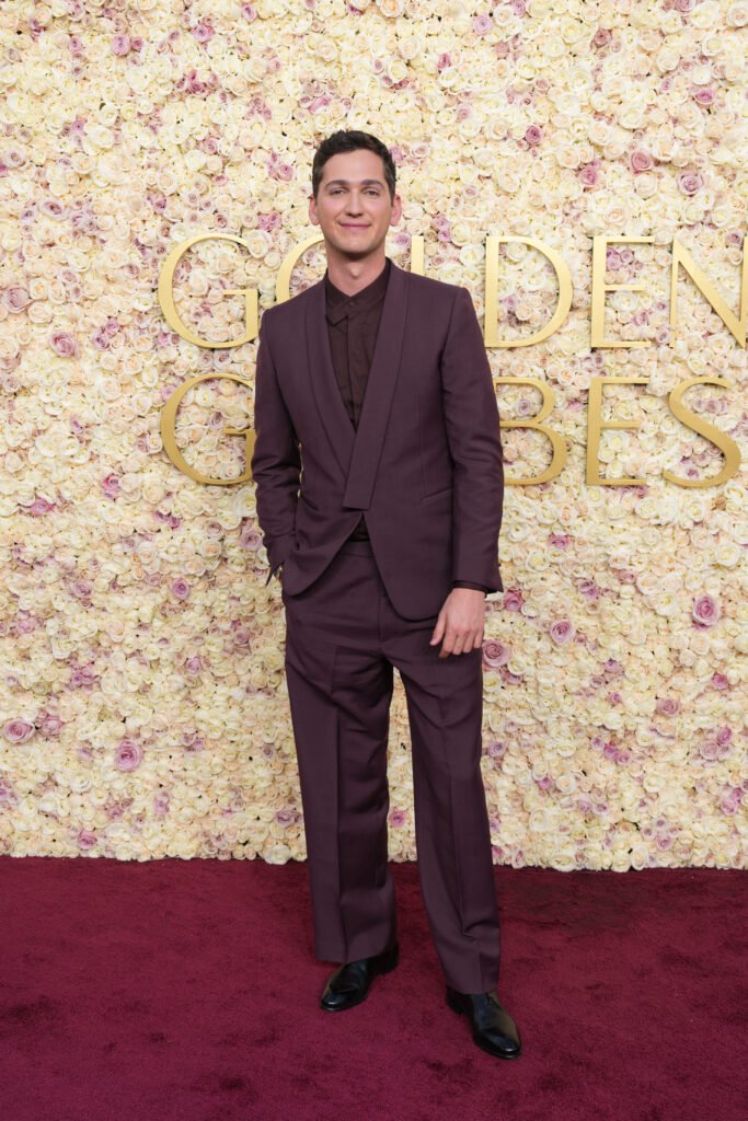 Jon M. Chu, director del galardonado filme «Wicked,» elevó el glamour con un tuxedo de terciopelo color chocolate, un suéter de cuello alto de cashmere y seda en tono a juego, y pantalones de noche en lana mohér negra. Los zapatos de charol negro añadieron el toque final a un look audaz pero refinado.