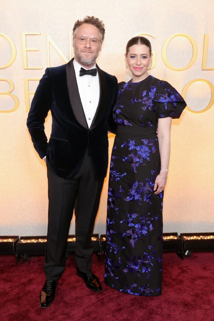 Seth Rogen and Lauren Miller attend the 82nd Annual Golden Globe Awards at The Beverly Hilton on January 05, 2025 in Beverly Hills, California. (Photo by Kevin Winter/GA/The Hollywood Reporter via Getty Images)