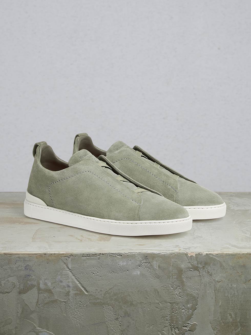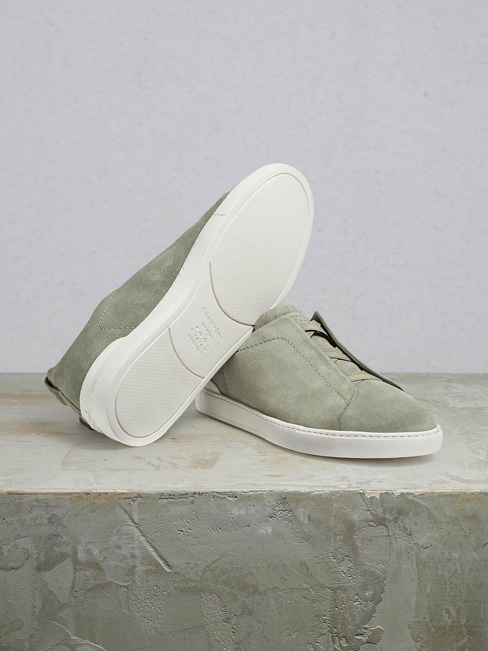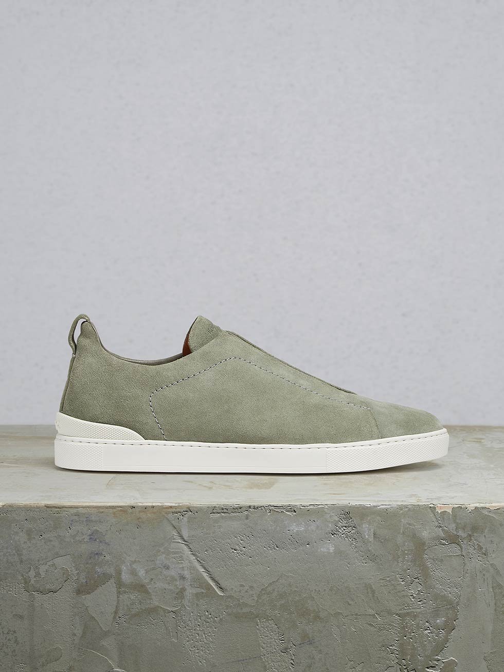 La resistente goma de triple cruce no sólo significa que las zapatillas se deslizan fácilmente, sino que también habla de la herencia de Zegna.