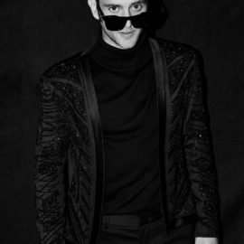 Chamarra: Álvaro Montaño & Samuel Girón. Suéter: John Leopard. Pantalón: Hugo Boss. Lentes: David Beckham para Safilo Group