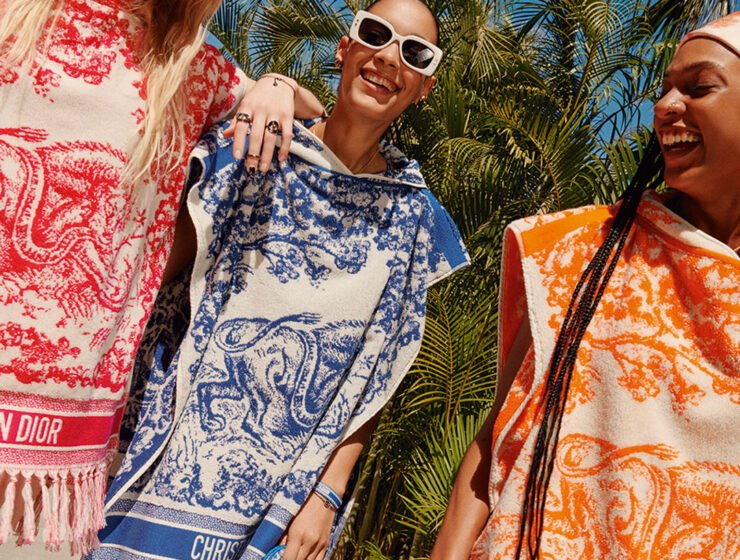 El estampado protagonista es La Toile de Jouy que viste de faldas, vestidos, shorts, trajes de baño y en algunos accesorios icónicos de la Maison.