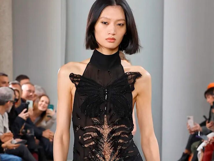 Bajo la mirada de David Koma, Blumarine se despoja de su inocencia de mariposa para deslizarse entre sombras. Delicadeza y oscuridad colisionan: el hada no se rompe, se vuelve arma. La metamorfosis…