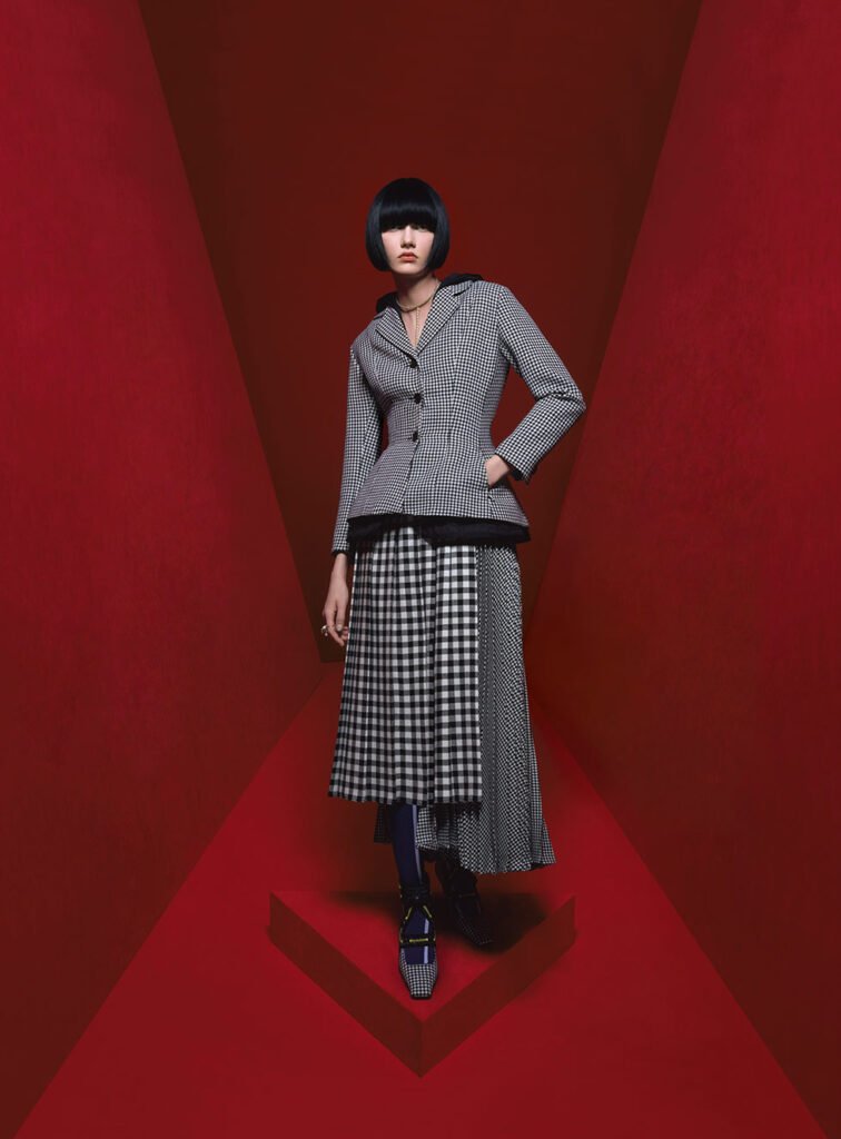 A través de la lente de la fotógrafa Brigitte Niedermair, los modelos se hacen eco de estas figuras icónicas, encarnando la audacia experimental de la colección en medio de una decoración silenciosa que evoca sutilmente la de un gabinete de curiosidades.