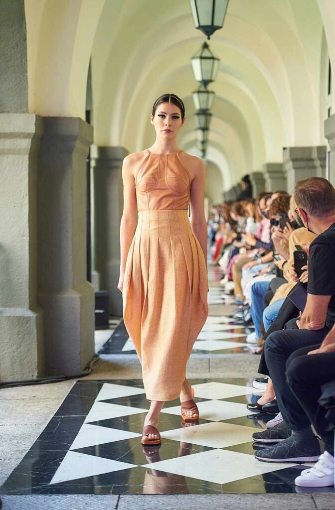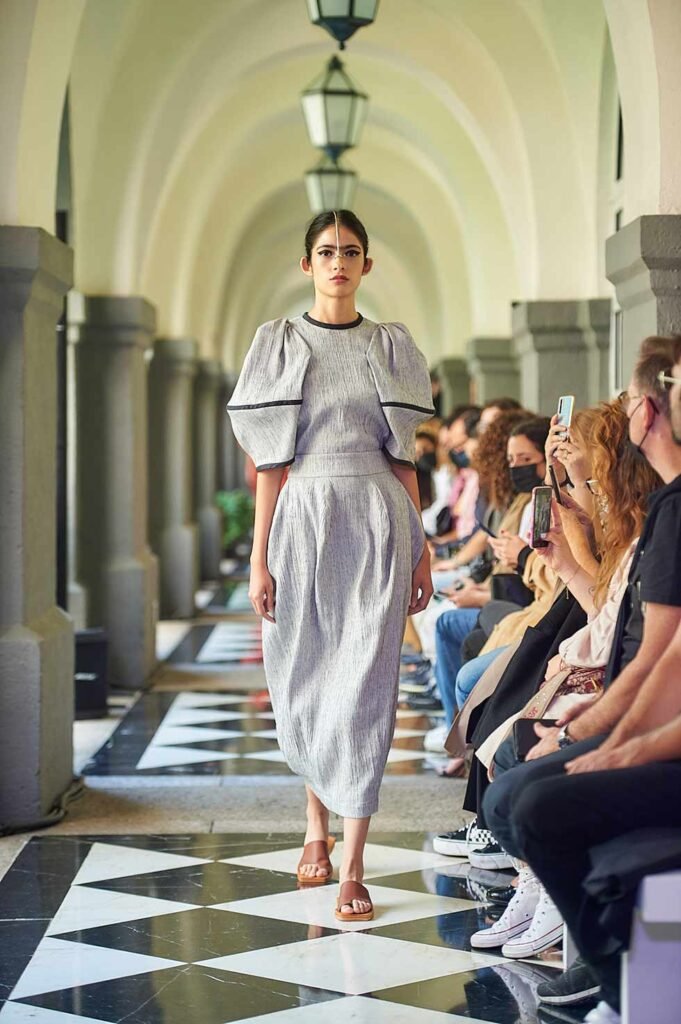 De nueva cuenta, en esta ocasión el trabajo artesanal vuelve a ser la construcción intrínseca de las modas fluidas, complejas y minuciosas que le vimos en la presentación.