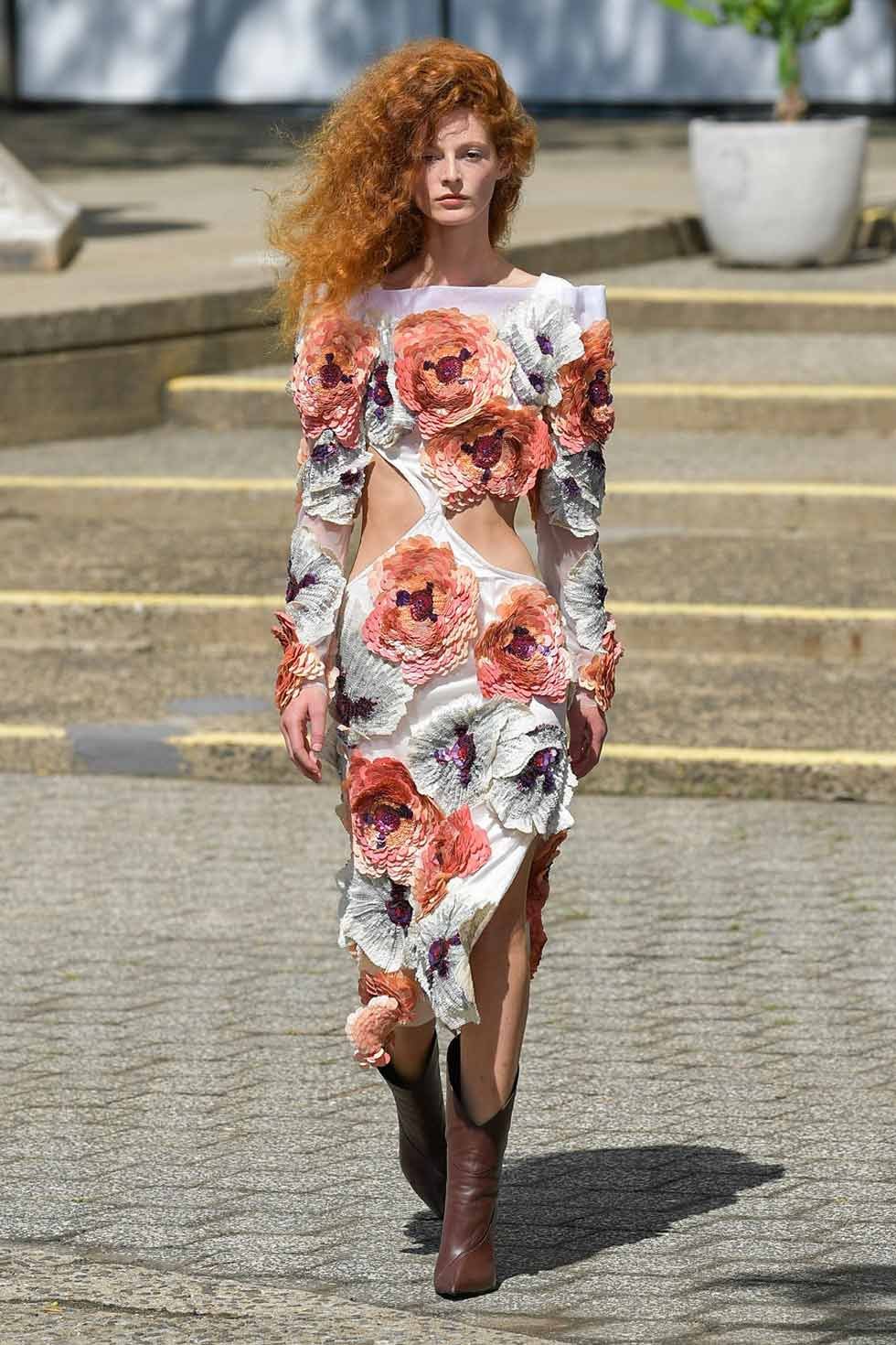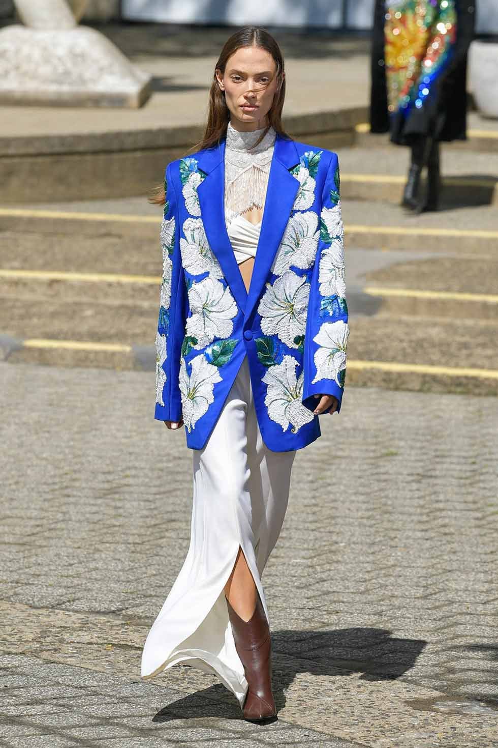 En la línea, podemos ver colores pastel y explosiones florales tridimensionales, así como sedas estampadas con setas de cuento de hadas y chaquetas salpicadas de hibisco.