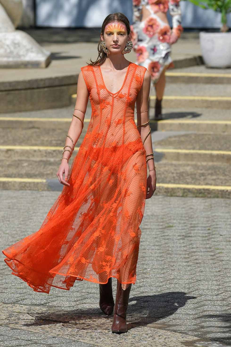 Los vestidos asemejan la lencería y la sensualidad, usando transparencias y monos con piernas descubiertas.